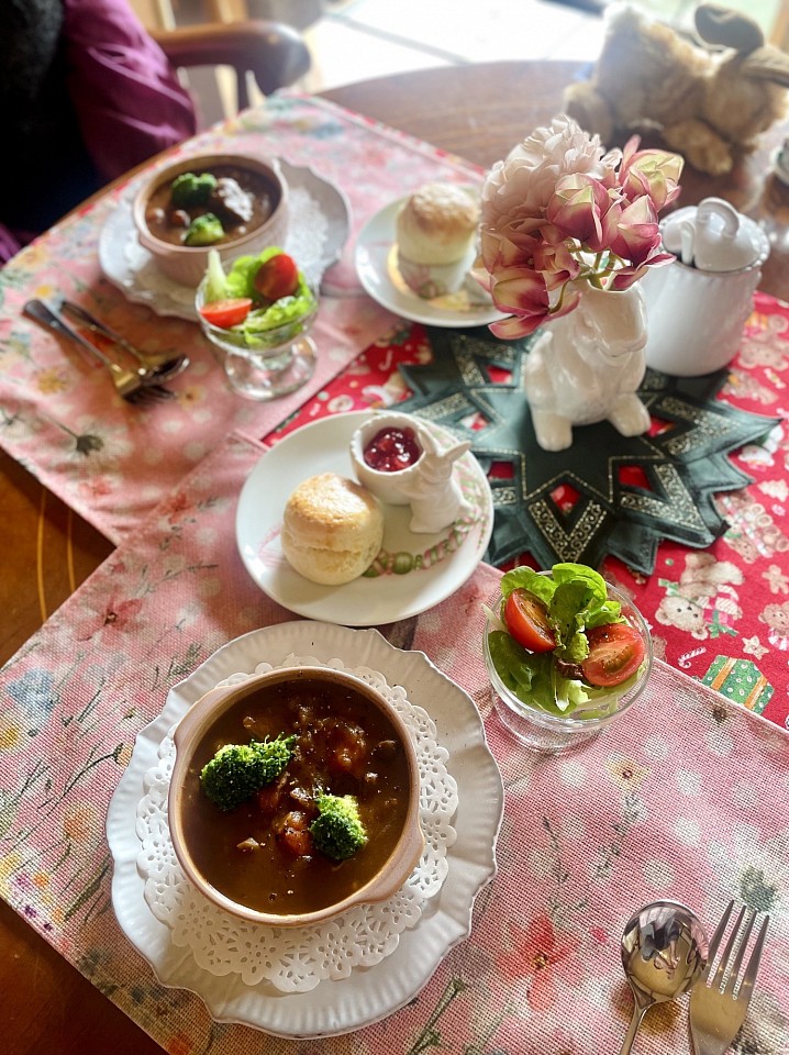焼きたてのスコーンには、メープルシロップを添えました。ビーフシチューの深い味わいと、スコーンにつけた、メープルの優しい甘さのコントラストをぜひお楽しみください♡